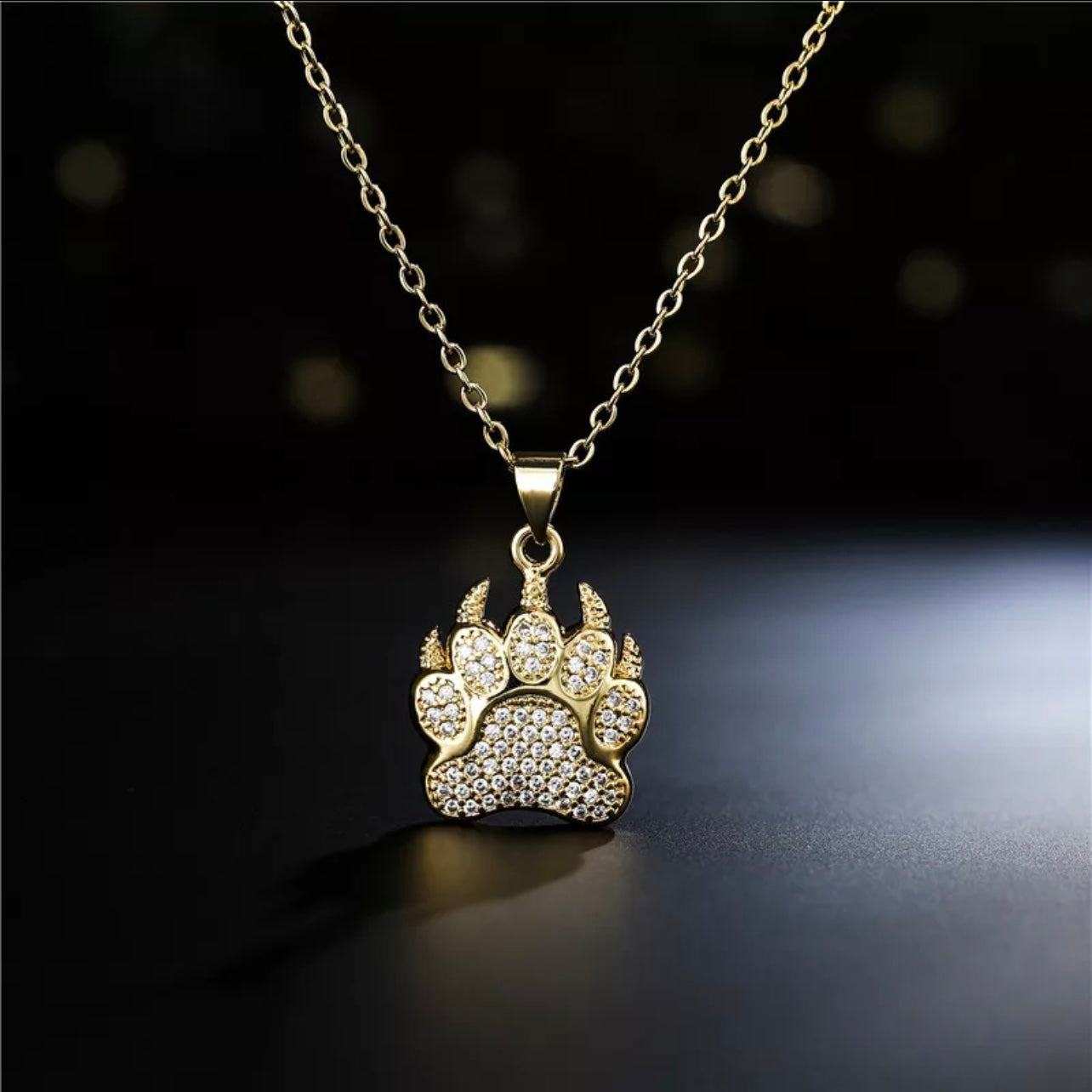 14K Gold plated unique paw Print Necklace for Man or Woman